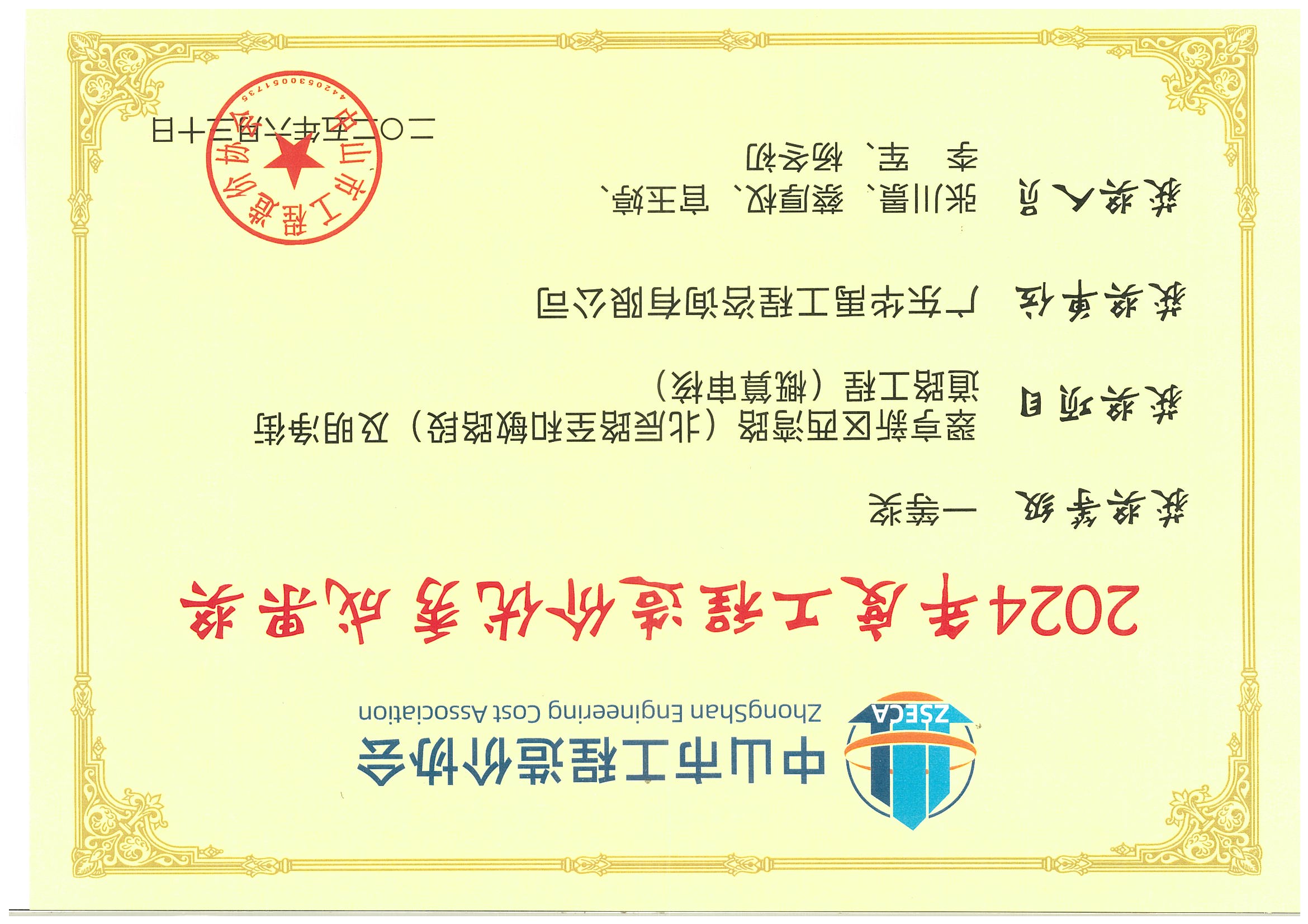 翠亨新区西湾路(北辰路至和敏路段)及明净街道路工程(概算审核)-2024年度中山市工程造价优秀成果奖一等奖