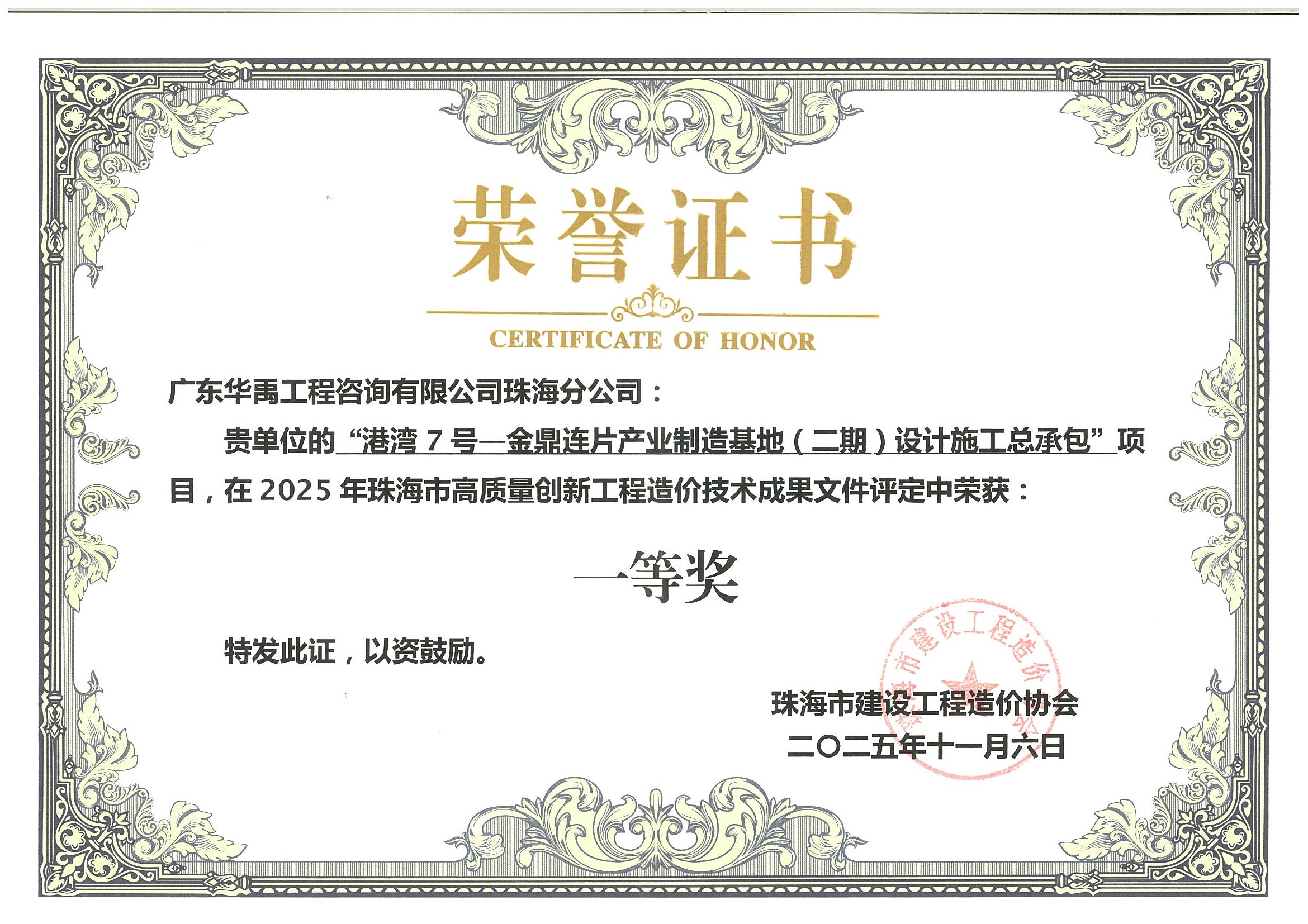 港湾7号—金鼎连片产业制造基地(二期)设计施工总承包-2025年珠海市高质量创新工程造价技术成果文件一等奖